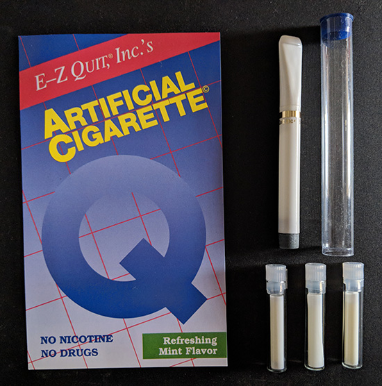 E-Z Quit Artificial Cigarette Starter Kit includes 1 re-usable E-Z Quit plastic cigarette and three flavored cartridges. Under normal usage, each flavored cartridge can last up to 2 weeks; 3 cartridges can last up to 6 weeks. since the 1500s,